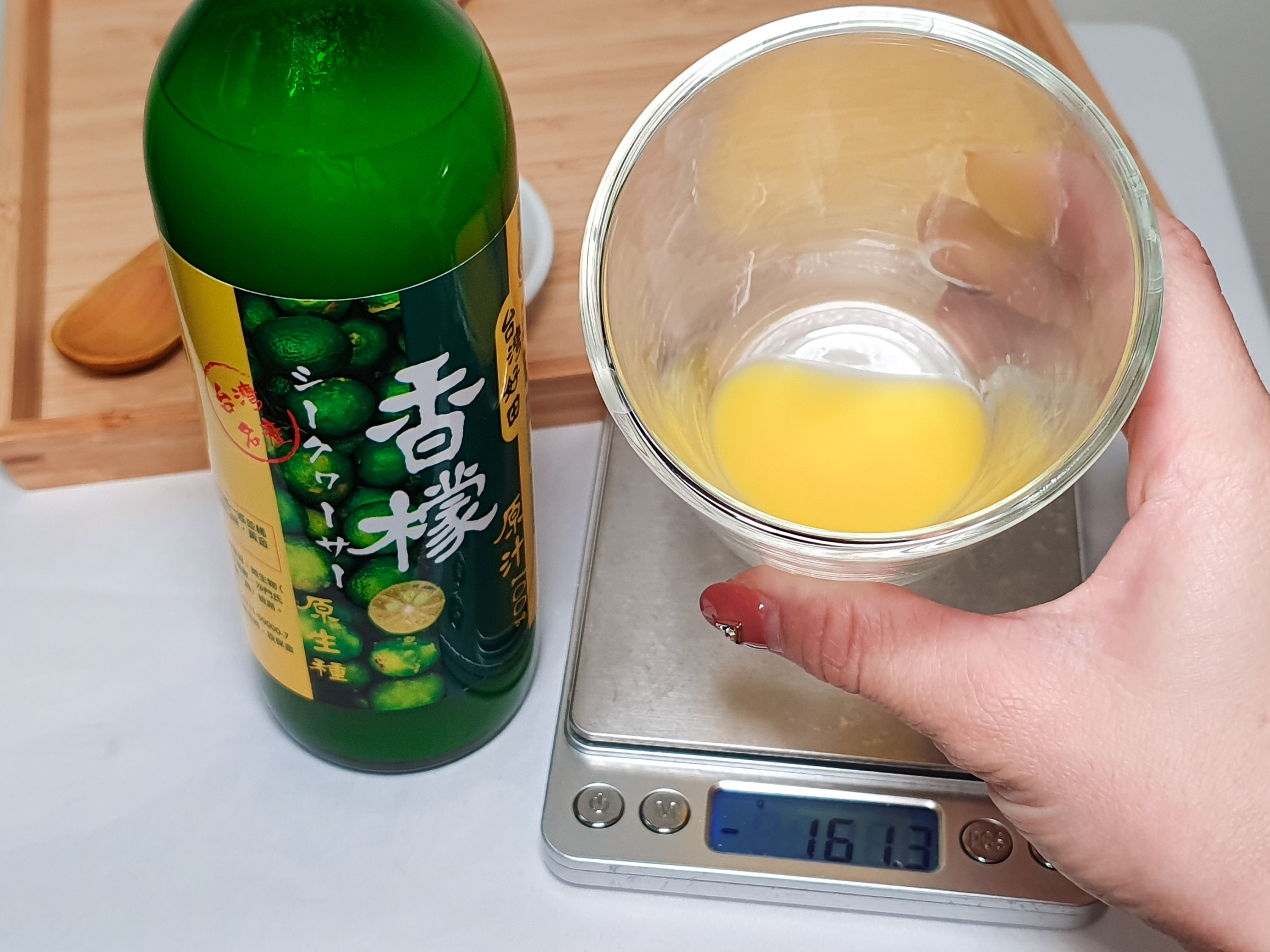 顏色偏黃色,跟一般檸檬汁不同